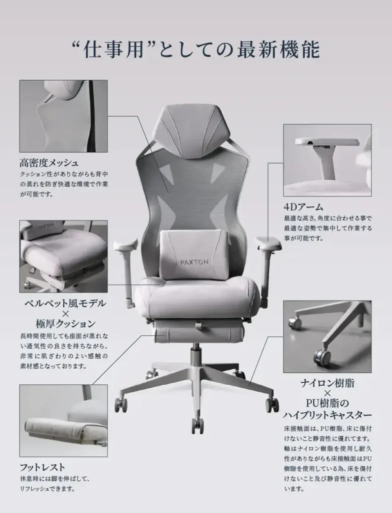 一方で、同じ「PAXTON」という名前でも、別メーカーの椅子が混ざって見えるケースもあります。値段だけで飛びつかず、販売元と仕様(耐久性や調整機構)を確認してから選ぶのが安全です。検索結果やショッピングモールは、似た名前の商品が並びやすいので、ここは丁寧に見たいところですね。