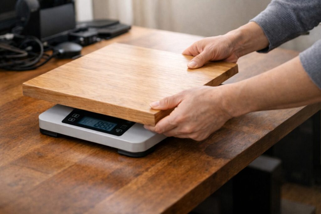 同じ幅140cm×奥行70cm前後でも、メラミン化粧板系、竹系、天然木系では重さがかなり違います。とくに天然木は厚みを持たせると一気に重くなりますし、質感の良い天板ほど「重いけれど満足度は高い」ということも多いです。だからこそ、素材選びはインテリアだけでなく、耐荷重計算の一部として考える必要があります。私はここを見た目だけで決めると危ないと思っています。