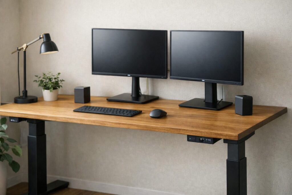 ここで押さえておきたいのは、電動なら全部快適というわけではないことです。軽量構成ならシングルモーター寄りのモデルでも十分なことがありますが、重い天板、複数モニター、アーム、PC本体を載せるなら、やはり上位クラスが安心です。特に左右の重量差が出やすい環境では、単に耐荷重の数字だけでなく、安定性や揺れにくさも体感差として出やすくなります。