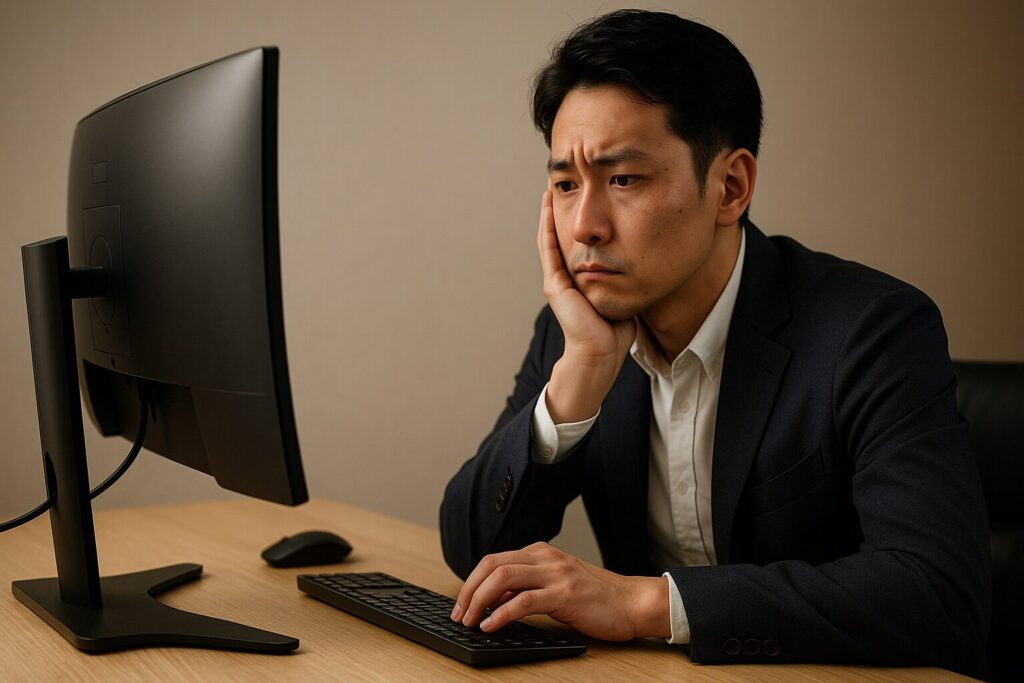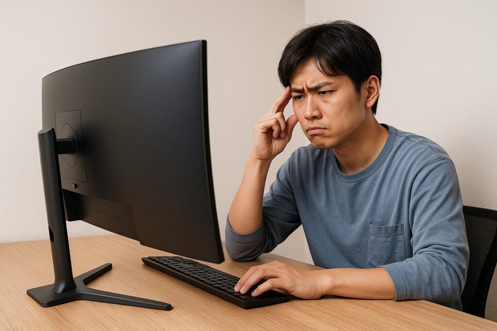 まずは、なぜ「湾曲モニターはやめとけ」と言われがちなのか、その典型パターンから整理していきます。多くの場合、モニター自体が悪いというよりも、用途やデスク環境とのミスマッチで後悔しているケースが多いです。