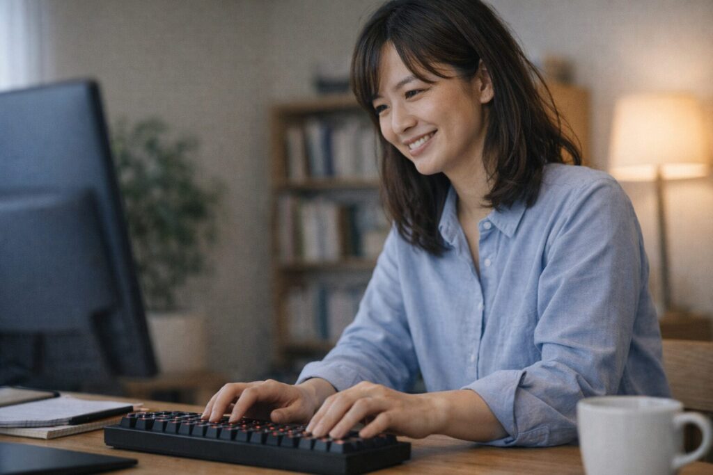 赤軸は、速さと確実性のバランスがちょうどよくて、仕事の文章入力とゲームを両立したい人にとって、外しにくい選択肢になりやすいです。銀軸みたいに尖っていないぶん、慣れやすいし、疲れにくい方向に寄ります。特に、仕事で長文を打つ人は、ミスタイプが増えると地味に消耗しますよね。速さだけを追うより、自分の“ミスの少なさ”も含めて総合点で選ぶのが結局ラクだと思います。
