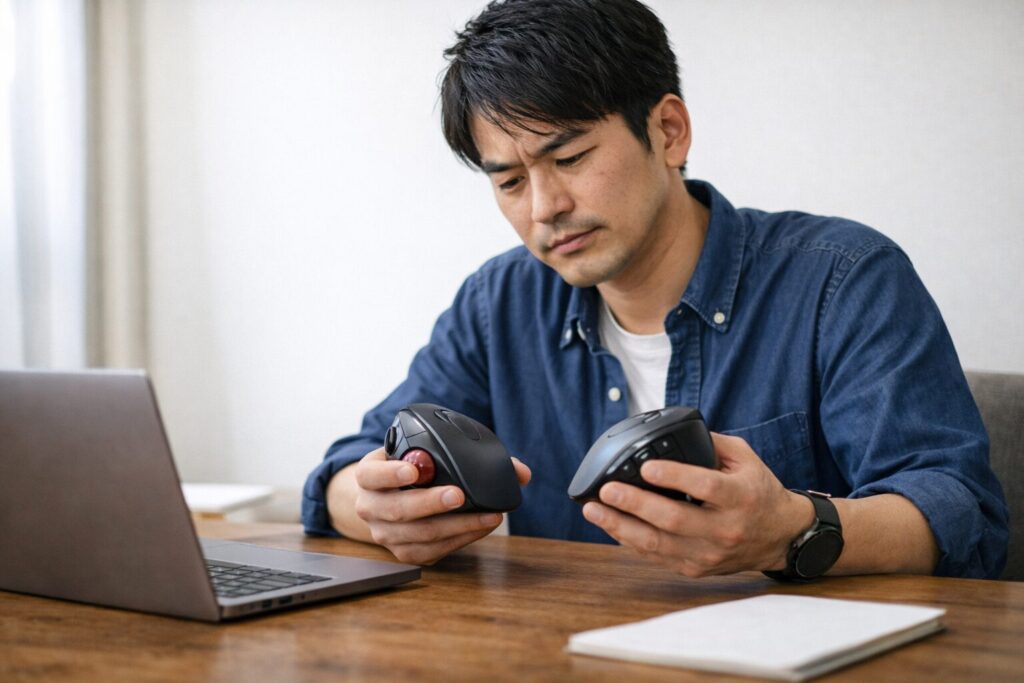 トラックボール選びで大事なのは、性能表よりも自分の負担ポイントを見ることです。手首が痛いのか、腕の移動がつらいのか、狭い机を何とかしたいのかで、向くモデルは変わります。